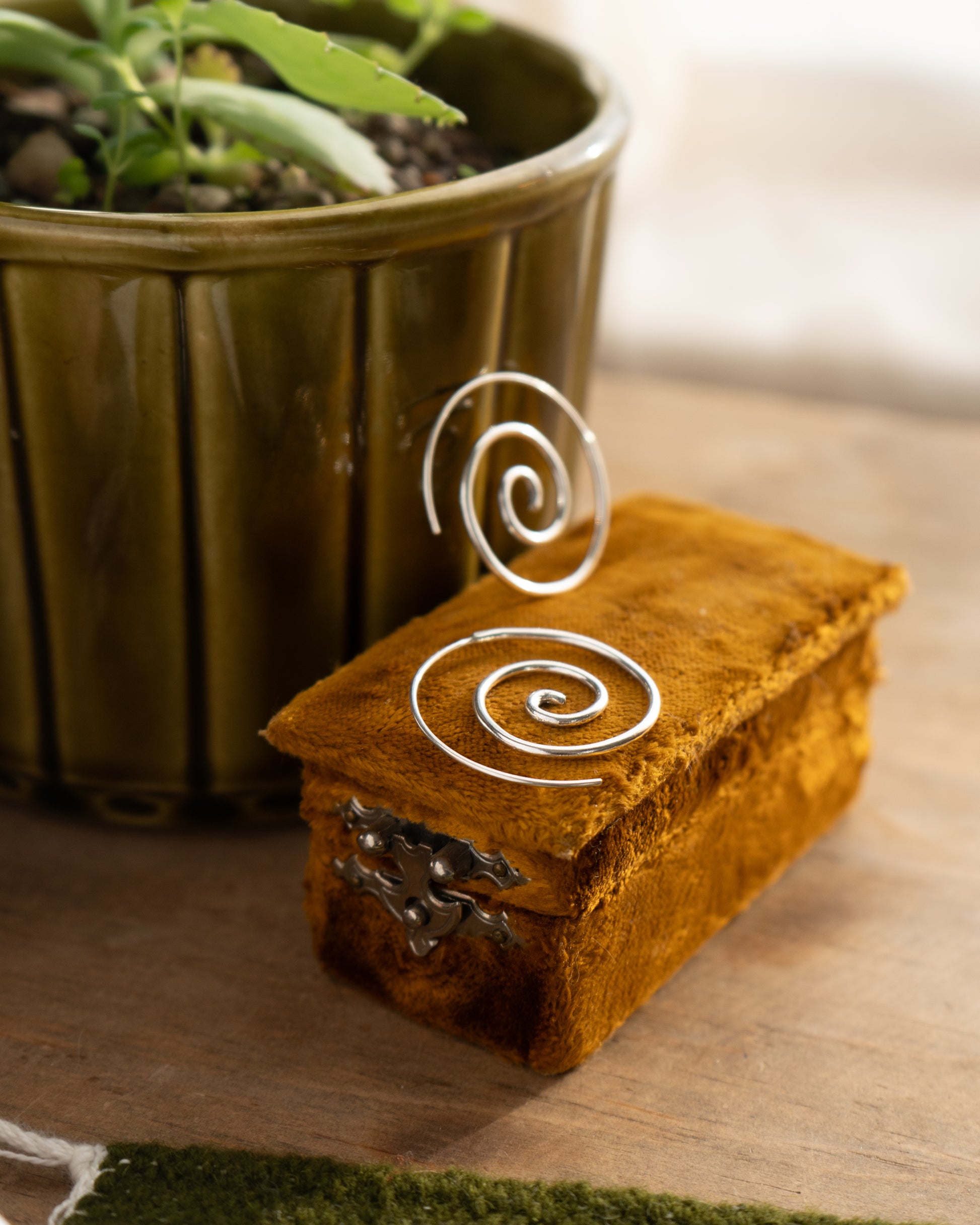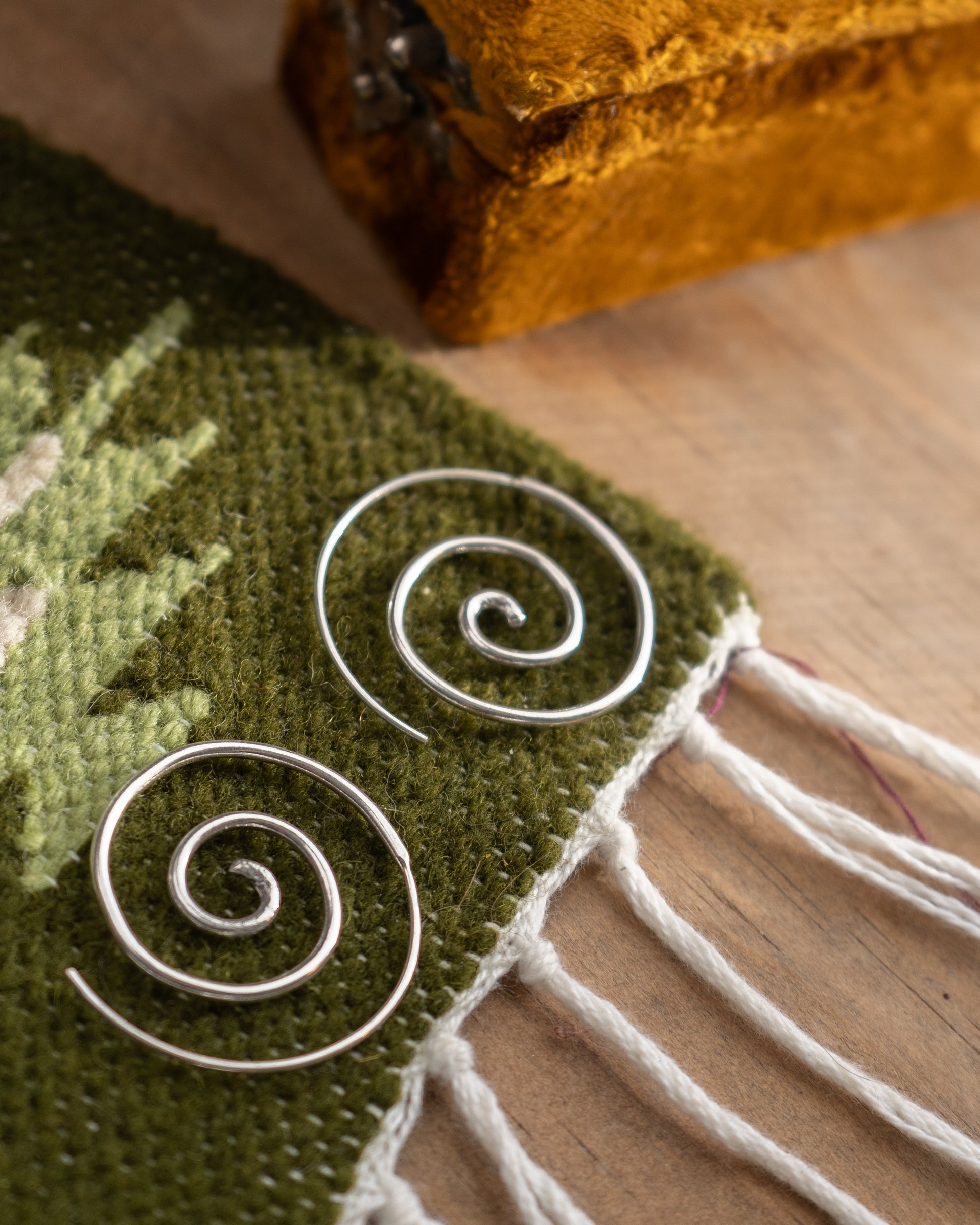 The Fibonacci Threaders are handcrafted from .925 sterling silver, shaped into a delicate spiral inspired by the timeless Fibonacci sequence. Each wire embodies the natural rhythm of the spiral, drawing the eye and the wearer into its flow. Lightweight and comfortable, they are easily threaded through the ear for everyday wear, turning a simple piece of jewelry into a subtle celebration of nature’s patterns.