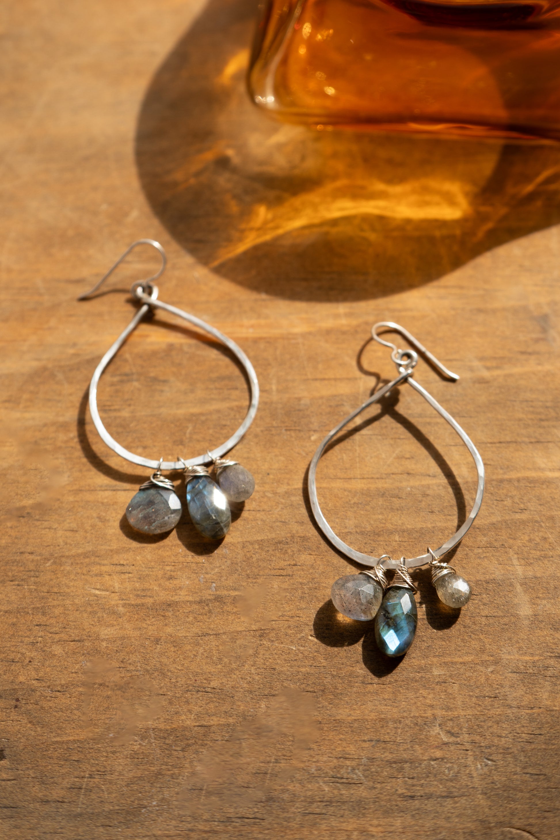 A sterling silver, simple statement with some blue flash labs to add some color and movement. Only 1 pair available!