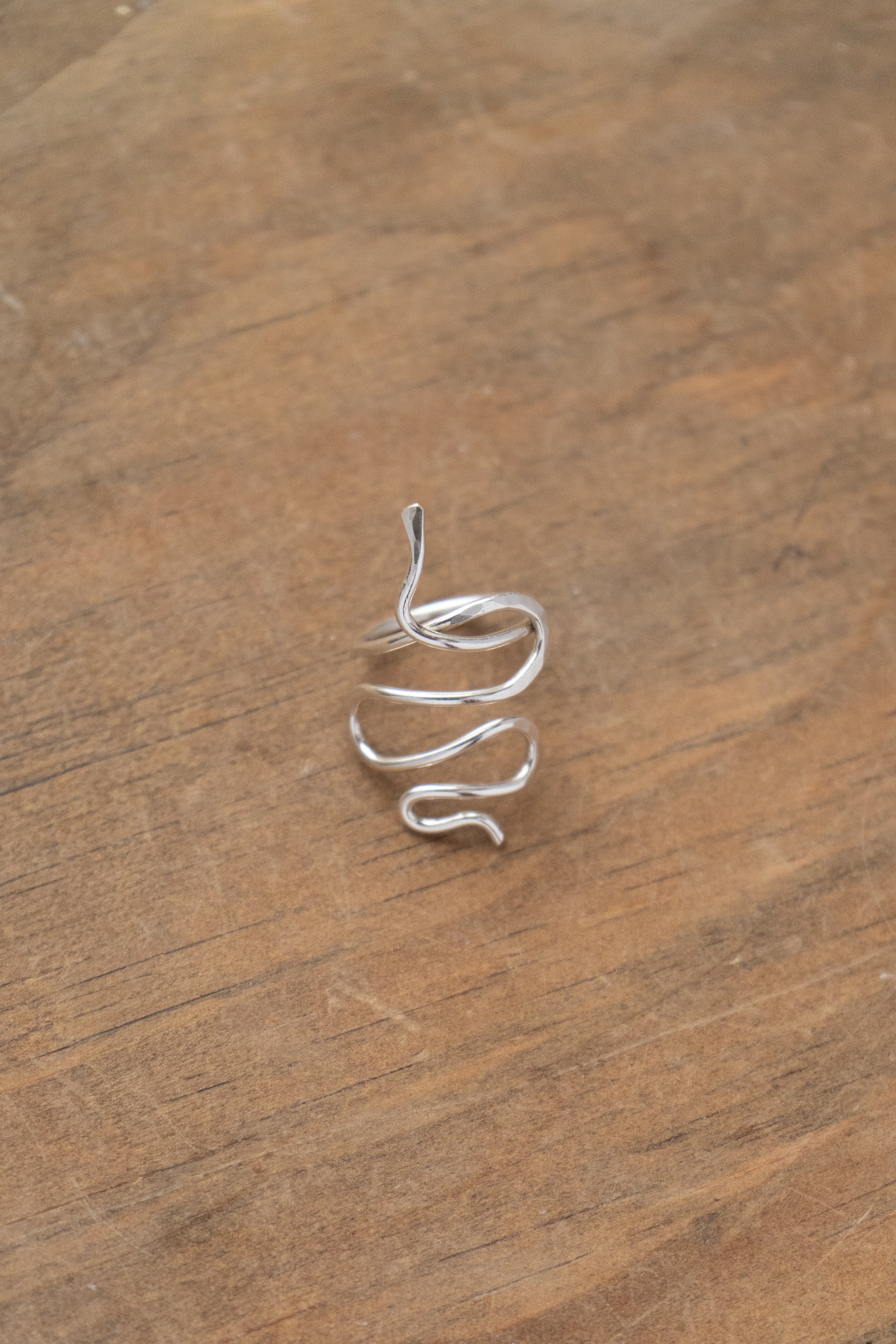 My original snake ring had a labradorite head but I wanted to simplify so I designed this! Made in sterling silver & a size 6. Function was not at the top of my mind when designing back then so sometimes this head does catch on things every once and awhile.
