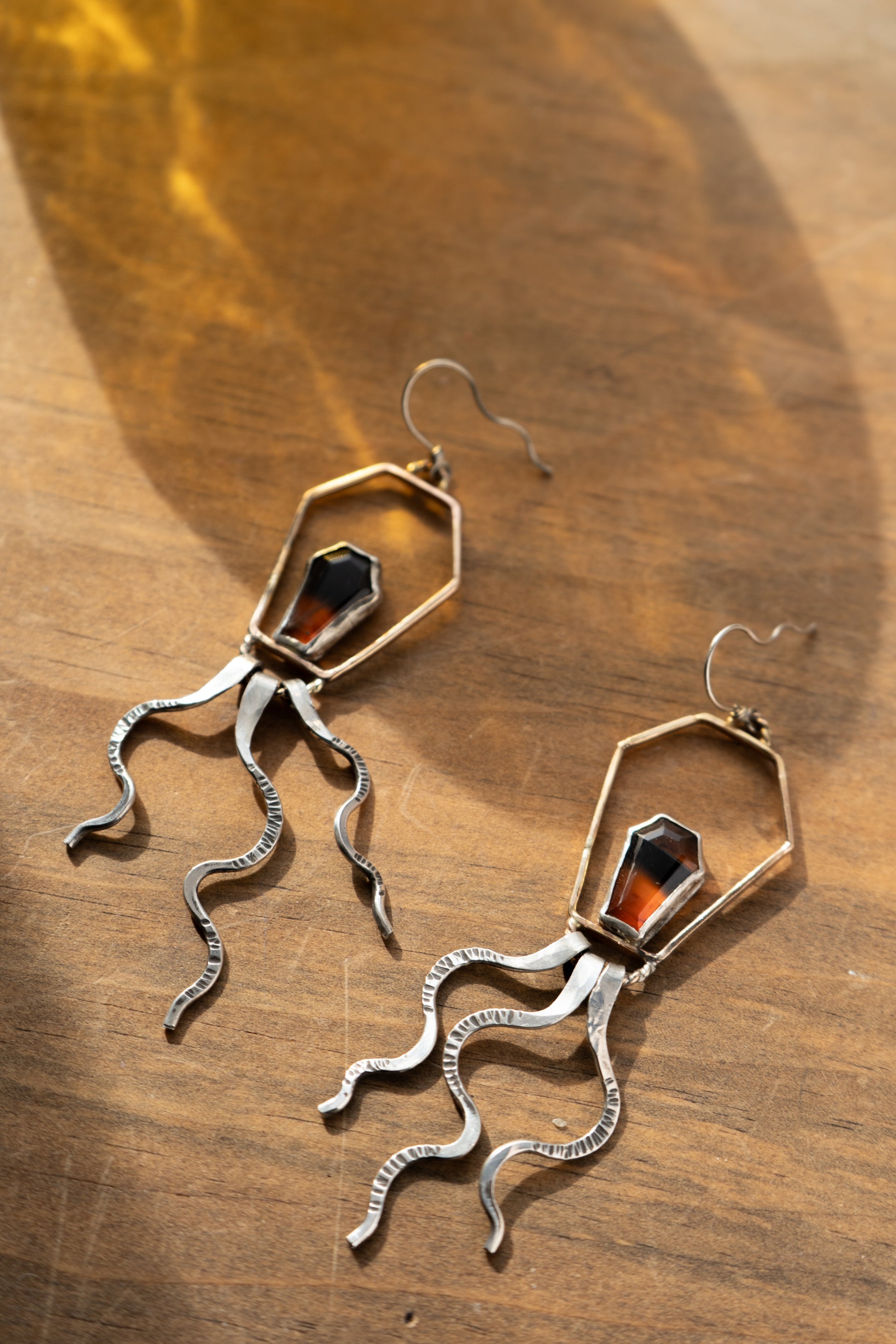 These were from a Halloween collection. Made with a Montanan agate stone and a mix of sterling silver and gold-fill.
