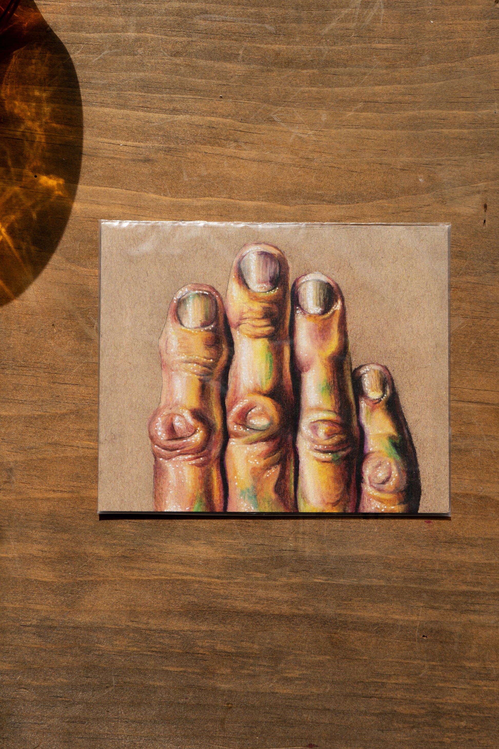 A colored pencil drawing of well-worn hands—creases, lines, and all the marks of a life lived. It’s a quiet symbol of gratitude: for the energy of youth, the wisdom of age, and everything in between. These hands remind us that living leaves traces, and every mark is a story worth honoring.